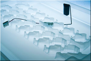 A custom made PP (polyprophelyne) tray for automotive parts handling and packaging as a replacement for conventional foams and styrofoams. This tray is washable/recyclable.