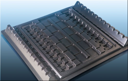 Polystyrene (High Impact) or HIPS are a commonly used material for automotive parts with surface conductivity requirerment. Usually used for automotive electronic parts with exposed circuits. The tray is designed as a box insert which is an inexpensive alternative to conventional foams, cartons and styro.